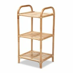 Budget ๐ฅ Baxton Studio Barras Bohemian Natural Brown Finished Rattan 3-Tier Display Shelf ๐